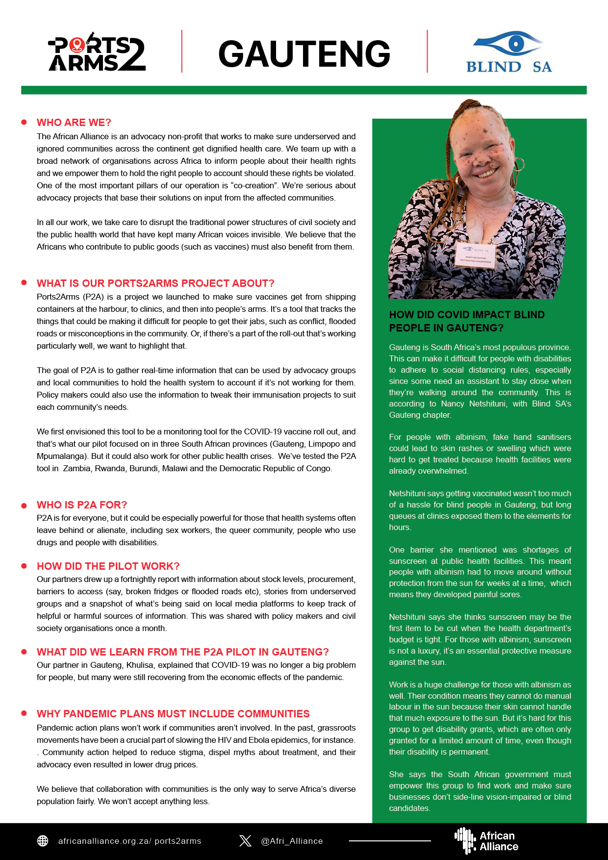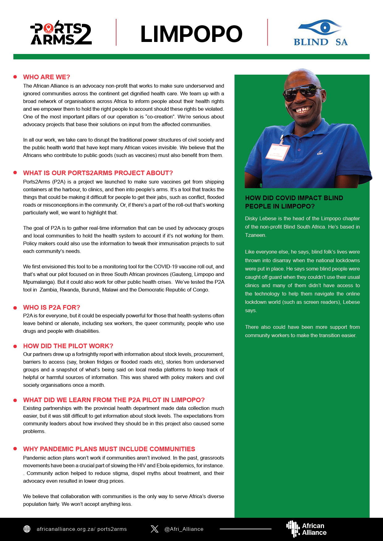 Our Ports2Arms team lead, Perrykent Nkole, conducted interviews with representatives from the advocacy group Blind South Africa in Limpopo, Mpumalanga and Gauteng.
